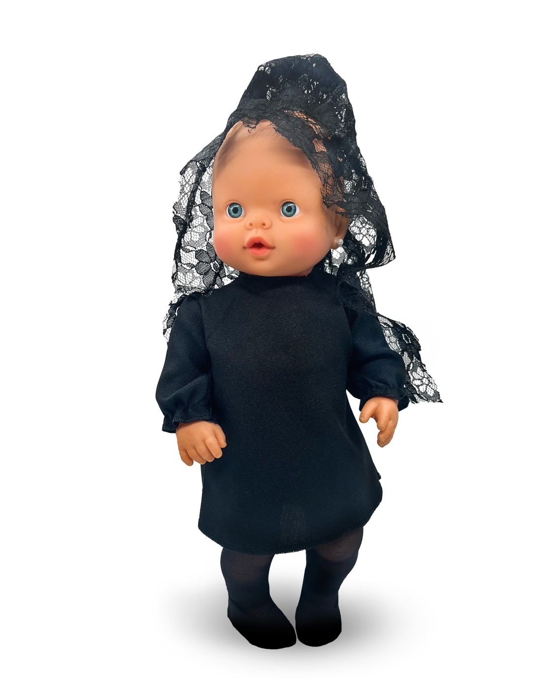 Incluye: Mantilla y peineta · Pendientes · Vestido · Medias negras · Zapatos